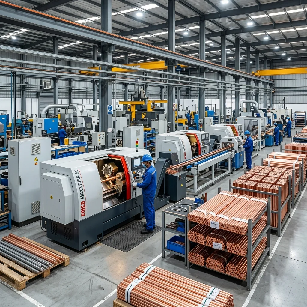 Our 3 manufacturing units are equipped with CNC electrode forming machines, automated copper electrolysis lines, and in-house CPRI-grade testing labs. Every batch undergoes salt-spray corrosion testing (1000+ hrs), tensile strength verification, and dimensional quality inspection to IS 3043 and IEC 62305 specifications.