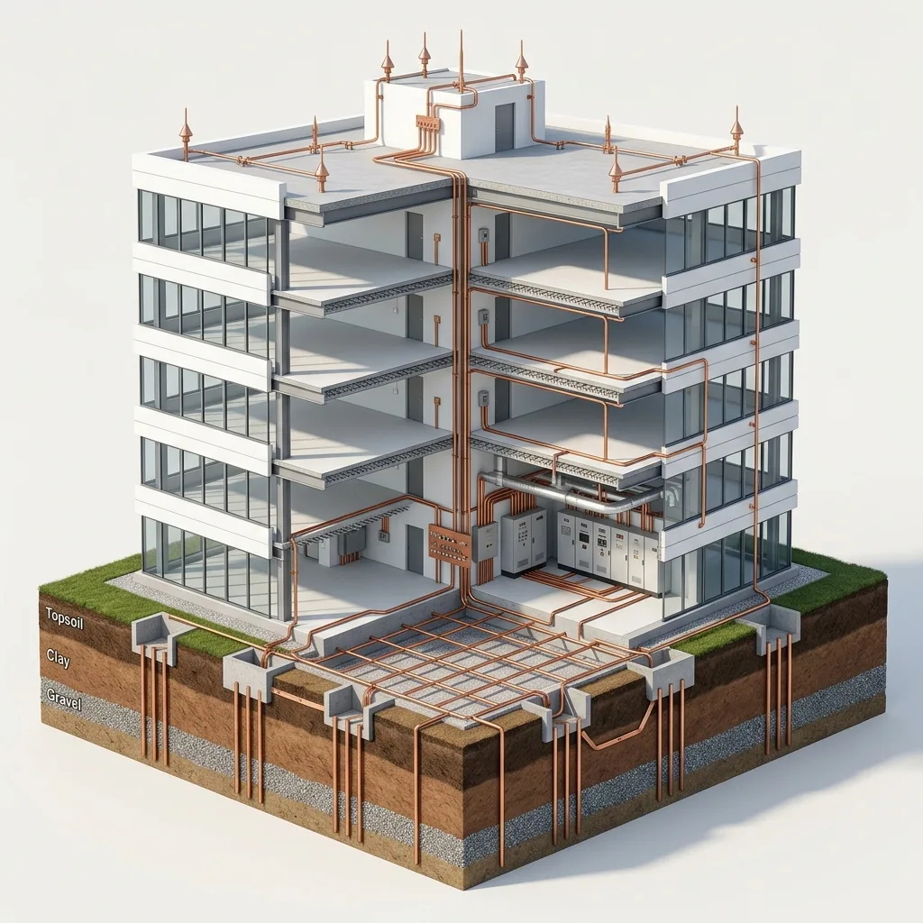 From Wenner 4-pin soil resistivity surveys to full earthing grid installation with CPRI-format test reports — we deliver IS 3043-compliant earthing and NFC 17-102 lightning protection as a single managed scope.
